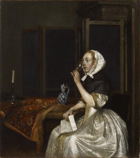 | Keywords: Gerard ter Borch (1617−1681)- Lady seated holding a Wineglass - Viiniä juova nainen kirje kädessään - Vindrickande kvinna (29358971172).jpg artwork creator Gerard ter Borch II 1617 ˆ’1681 en Lady Seated Holding a Wineglass fi Viiniä juova nainen kirje kädessään de Vindrickande kvinna Q20789826 ca 1665 ; 2009-02-23 13 42 oil on canvas / öljy kankaalle / olja pÃ¥ duk 38 3 x 34 cm credit line Hjalmar Linder Donation / Hjalmar Linderin lahjoituskokoelma / Hjalmar Linders donationssamling institution Sinebrychoff Art Museum / Sinebrychoffin taidemuseo / Konstmuseet Sinebrychoff accession number inv no A II 1531 photo / kuva / foto Finnish National Gallery / Kansallisgalleria / Finlands Nationalgalleri / Hannu Pakarinen Henri Tuomi https //www flickr com/photos/finnishnationalgallery/29358971172/ Gerard ter Borch 1617 ˆ’1681 Lady seated holding a Wineglass / Viiniä juova nainen kirje kädessään / Vindrickande kvinna https //www flickr com/people/127104863 N05 Finnish National Gallery PD-old cc-zero Finnish National Gallery https //flickr com/photos/127104863 N05/29358971172 2016-09-06 00 51 30 cc-zero Paintings in the Sinebrychoff Art Museum Paintings by Gerard ter Borch II Paintings of women Wine glasses |