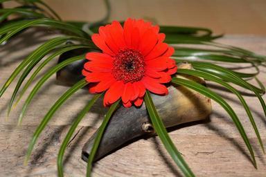 Keywords: gerbera flower plant blossom bloom red grass decoration close schnittblume
