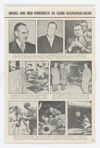 Keywords: Germ Warfare - NARA - 5729961.jpg Scope and content Communists caught in the act of lying Korean War propaganda shows Yakov Malik top right Trygve Lie top center and Dean Acheson top left General notes 5729961 Local identifier 306-PPA-61 U S Information Agency 08/01/1953 - 03/27/1978 Most Recent <br/> Department of State Bureau of Public Affairs International Information and Educational Exchange Program 1949 - 1952 Predecessor Still Picture Records Section Special Media Archives Services Division NWCS-S National Archives at College Park 8601 Adelphi Road College Park MD 20740-6001 1952-05-08 Record group Record Group 306 Records of the U S Information Agency 1900 - 2003 Record group ARC 622 Propaganda Posters Distributed in Asia compiled ca 1950 - 1955 Series ARC 1767935 File unit File unit ARC Variant control numbers Agency-Assigned Identifier PO-112-TA Other versions NARA-cooperation PD-USGov Political posters of the United States Yakov Malik Trygve Lie Dean Acheson |