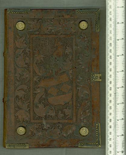Keywords: -A German Almanack.- End. Also is begriffen kurtzlich diss Kalenders nutz und tuglichait nach meinem slechte? tewtsche und chlainem vermugen. Magister Johann von Kunsperck -i.e. Joannes, Reg - Upper cover (IA26).jpg Style Armorial Leaf; Caption Upper cover; Colour Brown; Edge Unspecified exhibition history Decorative Technique Cuir-cisele cut leatherwork Tooled in blind; Cover Material Goatskin includes morocco turkey etc Ink ms notes on upper flyleaf Metal strip attached to diagram towards the end of the book perhaps to affix vovelle now gone Rebound with original covers onlaid Upper cover decorated with cut leatherwork with the arms of Wilwolt Poll lower cover plain Uppper cover has 4 bosses lower cover 5 Remnants of clasp Wooden boards Metal 'shoes' protect each corner object history Text 1474 ; Nuremberg; Poll Wilwolt object type Cc-zero place of creation Binding Germany place of discovery Schmidt-Ku nsemu ller Friedrich Adolf Corpus der gotischen Lederschnitteinba nde aus dem deutschen Sprachgebiet / Stuttgart Hiersemann 1980 Other BL cut leather bindings are listed in this book nos 158-164 British Library image http //www bl uk/catalogues/bookbindings/LargeImage aspx RecordId 020-000014810 ImageId ImageId 54229 Copyright BL A German Almanack End Also is begriffen kurtzlich diss Kalenders nutz und tuglichait nach meinem slechte tewtsche und chlainem vermugen Magister Johann von Kunsperck i e Joannes Regiomontanus Nuremberg 1474 Uploaded with GWToolset A German Almanack End Also is begriffen kurtzlich diss Kalenders nutz und tuglichait nach meinem slechte tewtsche und chlainem vermugen Magister Johann von Kunsperck i e Joannes Reg - Upper cover IA26 http //www webarchive org uk/bldatasets/bindings/IA26 jpg Bookbinding 15th-century bookbinding British Library Bookbindings Scanned with HP ScanJet 8200 -A German Almanack.- End. Also is begriffen kurtzlich diss Kalenders nutz und tuglichait nach meinem slechte? tewtsche und chlainem vermugen. Magister Johann von Kunsperck -i.e. Joannes, Reg - Upper cover (IA26).jpg Style Armorial Leaf; Caption Upper cover; Colour Brown; Edge Unspecified exhibition history Decorative Technique Cuir-cisele cut leatherwork Tooled in blind; Cover Material Goatskin includes morocco turkey etc Ink ms notes on upper flyleaf Metal strip attached to diagram towards the end of the book perhaps to affix vovelle now gone Rebound with original covers onlaid Upper cover decorated with cut leatherwork with the arms of Wilwolt Poll lower cover plain Uppper cover has 4 bosses lower cover 5 Remnants of clasp Wooden boards Metal 'shoes' protect each corner object history Text 1474 ; Nuremberg; Poll Wilwolt object type Cc-zero place of creation Binding Germany place of discovery Schmidt-Ku nsemu ller Friedrich Adolf Corpus der gotischen Lederschnitteinba nde aus dem deutschen Sprachgebiet / Stuttgart Hiersemann 1980 Other BL cut leather bindings are listed in this book nos 158-164 British Library image http //www bl uk/catalogues/bookbindings/LargeImage aspx RecordId 020-000014810 ImageId ImageId 54229 Copyright BL A German Almanack End Also is begriffen kurtzlich diss Kalenders nutz und tuglichait nach meinem slechte tewtsche und chlainem vermugen Magister Johann von Kunsperck i e Joannes Regiomontanus Nuremberg 1474 Uploaded with GWToolset A German Almanack End Also is begriffen kurtzlich diss Kalenders nutz und tuglichait nach meinem slechte tewtsche und chlainem vermugen Magister Johann von Kunsperck i e Joannes Reg - Upper cover IA26 http //www webarchive org uk/bldatasets/bindings/IA26 jpg Bookbinding 15th-century bookbinding British Library Bookbindings Scanned with HP ScanJet 8200 |