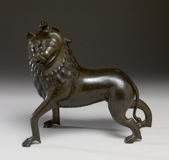 Keywords: German - Aquamanile in the Form of a Lion - Walters 5325 - Left Side.jpg Aquamanilia or water pitchers present an interesting case of intercultural exchange across great distances This type of vessel is a small closed water pourer often shaped as an animal or mythological creature The form developed in the ancient Near East and many of the animals shown whether real or mythical also derive from Near Eastern prototypes lions were particularly favored This unusual example bears a Hebrew inscription on one side that reads Blessed be the King of the Universe who has instructed us to wash our hands indicating that it served a ceremonial function either in a Jewish home or synagogue Whether this inscription is original to this piece or added later it attests to the diverse cultural communities served by the same type of object late 13th or early 14th century Late Medieval brass H 9 1/8 x L 10 5/8 x D 5 1/16 in 23 2 x 27 x 12 9 cm accession number 53 25 19407 Stein Sale Paris 1899 no 139 Henri Daguerre Paris by purchase Henry Walters 1927 by purchase Walters Art Museum Henry Walters Acquired by Henry Walters 1927 Translation Blessed be God King of the Universe who blessed us and instructed us to wash our hands Baruch ata adonai alokhenu meleh Ha-olam asher Ridshanu bemitsvotsar vetsivanu al netilas yadayim Highlights from the Collection The Walters Art Gallery Baltimore 1998-2001 place of origin Flanders Belgium Walters Art Museum license Medieval metalwork in the Walters Art Museum German art in the Walters Art Museum Media contributed by the Walters Art Museum needs category review Media contributed by the Walters Art Museum needs artist review |