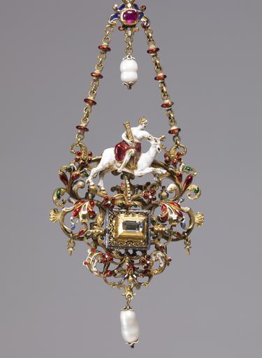 | Keywords: German - Pendant with a Personification of Fortitude - Walters 44622.jpg The chain and attachments with surrounding flourishes are 19th-century repairs and embellishments probably by Reinhold Vasters 1827-1909 ca 1625 1650 Baroque gold enamel diamonds rubies pearls cm 12 7 accession number 44 622 29648 Trustees of the Pierpont Morgan Library date and mode of acquisition unknown Walters Art Museum Gift of the Trustees of the Pierpont Morgan Library in memory of Miss Belle Da Costa Greene 1951 Jewelry - Ancient to Modern The Walters Art Gallery Baltimore 1979-1980 Court Jewels of the Renaissance 1500-1630 Victoria and Albert Museum London 1980-1981 Artful Deception The Craft of the Forger The Walters Art Gallery Baltimore; Edsel Eleanor Ford House Grosse Pointe Shores; Dallas Museum of Art Dallas; Oklahoma City Museum of Art Oklahoma City; Portland Museum of Art Portland; The Fine Arts Center at Cheekwood Nashville; Phoenix Art Museum Phoenix; Columbia Museum of Art Columbia; Elvehjem Museum of Art Madison; Crocker Art Museum Sacramento; Memorial Art Gallery of the University of Rochester Rochester; The Barnum Museum Bridgeport 1987-1992 place of origin Aachen Germany Walters Art Museum license Baroque art in the Walters Art Museum German art in the Walters Art Museum Reinhold Vasters Media contributed by the Walters Art Museum needs category review |