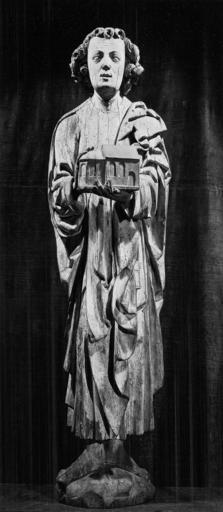 | Keywords: German - Saint Sebaldus or Saint Leopold - Walters 27296.jpg This carved wooden statue came from a church interior Most statues of this type were originally covered by gesso a mixture of glue and plaster of Paris and then painted in vibrant colors with some details gilded; only traces of these decorations still remain This figure may represent either Saint Sebaldus 8th century or Saint Leopold 12th century Both were depicted in central Europe ca 1500 holding a model of a church the tower on this example is missing but both usually have additional attributes ca 1510 1530 Northern Renaissance carved wood traces of gesso and paint cm 153 42 37 accession number 27 296 6558 Raoul Heilbronner Paris by purchase Henry Walters Baltimore 1910 by purchase Walters Art Museum Henry Walters Acquired by Henry Walters 1910 place of origin Franconia Germany Walters Art Museum license Renaissance sculpture in the Walters Art Museum Medieval art in the Walters Art Museum 16th-century statues of men German art in the Walters Art Museum People holding models of churches in art |