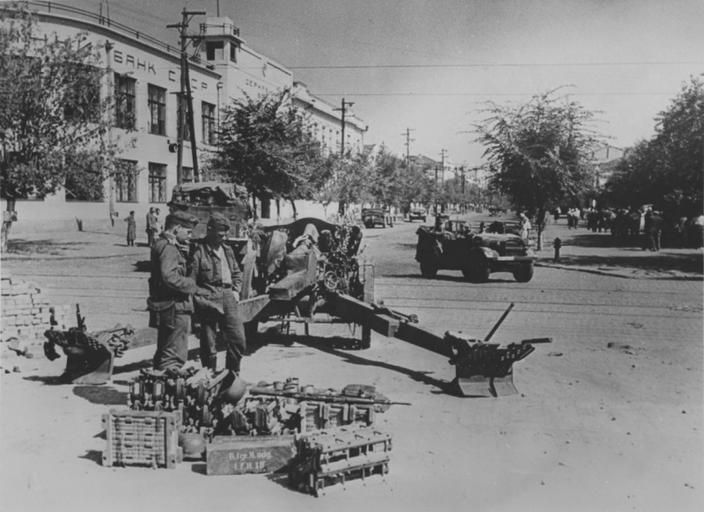| Keywords: Germans in Kriwoi Rog.jpg en Germans in Kriwoi Rog/ К ивой Рог 1942г О удие асположено на улице Свободы название пе иода ВОВ ул Ленина ап авлено на улицу Ка ла а кса Слева на фото Госуда ственный банк 1942 http //80564 info/history-8_1 htm Unknown soldier other versions Custom license marker 2014 11 18 PD-Ukraine 1940s Uploaded with UploadWizard 1942 in Kryvyi Rih Kryvyi Rih during World War II 10 5 cm leFH 18 | ||||