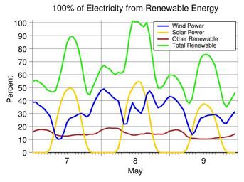 Keywords: Germany Renewable Energy 2016-05-07 to 09.svg translate yes en On May 8 2016 for almost four hours from 11 am to 1 pm from 1 15 to 2 15 pm and from 4 15 to 4 45 pm all of Germany's electricity was from renewable energy Excess electricity was exported Data source https //transparency entsoe eu/generation/r2/actualGenerationPerProductionType/show entsoe 2016-05-18 own Delphi234 other versions Generated with Wikimedia SVG Chart SVG Chart/box cc-zero Photovoltaic power statistics of Germany Wind energy statistics of Germany Renewable energy statistics of Germany May 2016 in Germany |