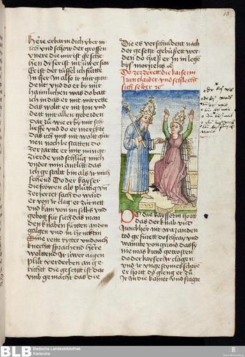 Keywords: Gesta Romanorum - Donaueschingen 13r.jpg en Gesta Romanorum - Donaueschingen 145 a manuscript from Upper Swabia in Germany from circa 1452 de Titel Gesta Romanorum - Donaueschingen 145 Erschienen Oberschwaben um 1452 Online-Ausg Karlsruhe Badische Landesbibliothek 2012 Umfang 97 Bl ; 30 5 x 21 5 cm Anmerkung Original Handschrift auf Papier - Schreibsprache schwäbisch URN urn nbn de bsz 31-28735 info Signatur Donaueschingen 145 1452 http //digital blb-karlsruhe de/blbhsl/Handschriften/content/titleinfo/585870 Badische Landesbibliothek author other versions PD-Art Gesta Romanorum Uploaded with UploadWizard |