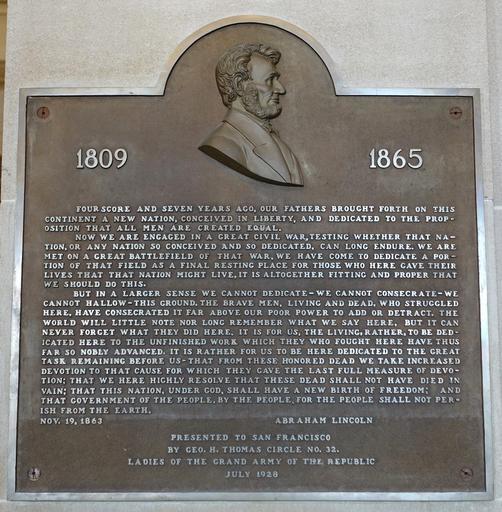 Keywords: Gettysburg Address - San Francisco City Hall - DSC02807.JPG en Gettysburg Address - San Francisco City Hall San Francisco California USA 2015-05-14 20 02 51 own Daderot other versions cc-zero Plaques in San Francisco City Hall Uploaded with UploadWizard |