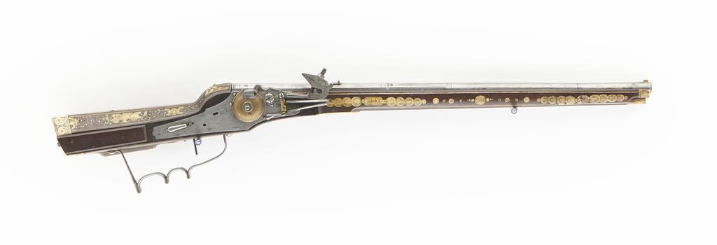 Keywords: Gevär - Livrustkammaren - 96552.tif LSH artwork Balthasar Johann Zellner bössmed Georg Zellner stockmakare Balthasar Dressler Drechsler Dreshler Drexler hovbössmed sv Rund slätborrad s k tornpipa med åttsidig kammare vid övergången på ovansidan ett 85 mm långt parti med filad spetsdekor och skålningar vid bakkanten Böjt tvärt avskuret svansskruvblad skålad siktränna från svansskruvblad till sikte På sidofaserna stämplar B D samt två sköldformiga stämplar med fåglar samt därbakom ornamentsstämplar Stöckel nr 255 Framför siktet graverad datering 1601 samt likadana ornamentstämplar som vid pipbasen På höger sidofas på kammarens undersida stämpel M C <br/>Riktmedel Inlaxade riktmedel ståndsikte samt stolpkorn av mässing <br/>Fästning Två häften pipan fäst med krysskruv underifrån främre varbygelskruven samt två pipstift av stål <br/>Hjullås med plant låsbleck av stål liten spets på bakänden på låsbleckets bakre del ett välvt studellöv samt urtag för virvelsäkring som nu saknas Utvändigt hjul täckt av välvd hjulkapsel av mässing med graverad rankdekor Fängpanna med låg rak krutskärm fängpannelock med rörlig arm tryckknapp med välvt huvud tvärgående streckdekor Kantig balusterformig hankropp plan hals med rund genombrytning kantiga käkar överkäken lö s kort grepp med liten volut käkskruv med fyrsidigt huvud Hanfjäder med fasade kanter droppformigt välvt fjäderlöv med liten björn <br/>Fästning Två låsskruvar <br/>Rak avtryckare med ställskruv i låsbleckets framkant avtryckarbleck av stål med spetsig framände <br/>Helstock av valnöt signerad G Z bakom svansskruven Kolv av tysk typ med vinge och kolvlåda Ej ursprungligt plant kolvlådelock med fasade kanter Delvis kompletterade beslag och inläggningar av ben med rullverksdekor Slät bakplåt utan stödkula ursprunglig ändbeslag på kolven med rullverksdekor plattan på kolvens högra sida utbytt På vingen platta med till stor del utplånad dekor bakre låsskruvbrickan ej ursprunglig På framstocken stora pipstiftsbrickor i form av ringar främre delen av det bakre samt hela det främre på vänster sida utbytta Över laddstocksrännans bakände en ej ursprunglig benplatta Näsband med dubbla kantlinjer På framstocken inbränt rustkammarmärke namnchiffer C A krönt av öppen krona Varbygel av stål med två fingerlägen <br/>Tillbehör <br/>Laddstock av trä l 611 mm framtill skodd med ben med dubbla graverade ringar original caption Gevär<br/> Nyckelord Hjullåsbössa 1601 walnut e3 - eldvapen - stock material valnöt - steel e127 - eldvapen - pipa lås och stockbeslag material stål - brass e24 - eldvapen - lås och riktmedel material mässing - bone e8 - eldvapen - stockdekor material ben g 2598 size mm 616 pipa size mm 874 LRK Töjhuset Arsenalen Köpenhamn arsenal Rendsborg-rustkammaren B D Stöckelnr 255 anv e1 - eldvapen - pipa; Balthasar Johann Zellner C A öppen krona brännmärke 1921 465 anv e3 - eldvapen - stock; Christian Albrecht av Holstein-Gottorp G Z stocksignering anv e3 - eldvapen - stock; Georg Zellner M C Stöckelnr 3889 anv e1 - eldvapen - pipa; anonym pipsmed B D Stöckelnr 255 anv e1 - eldvapen - pipa; Balthasar Johann Zellner C A öppen krona brännmärke 1921 465 anv e3 - eldvapen - stock; Christian Albrecht av Holstein-Gottorp G Z stocksignering anv e3 - eldvapen - stock; Georg Zellner M C Stöckelnr 3889 anv e1 - eldvapen - pipa; anonym pipsmed place of origin Dresden original filename lm_dig10102 50024 inventory number LRK 13437 96552 CC-BY-SA Erik Lernestål Wheellock musket images from Livrustkammaren Photographs of weapons by Erik Lernestål Media contributed by LSH dim-with multiple size templates Media contributed by LSH unmatched creator Media contributed by LSH 2014-11 |