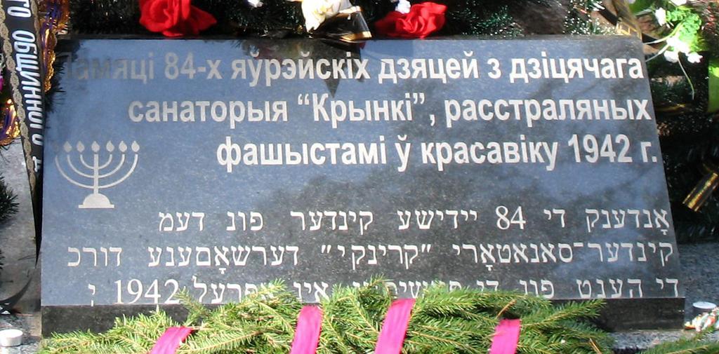 Keywords: Ghetto Krynki 1a.jpg ru Радпись Π½Π° памятникС Π½Π° мСстС убийства Π² Π°ΠΏΡ Π΅Π»Π΅ 1942 Π³ΠΎΠ΄Π° нацистами ΠΈ полицаями 84 Π΅Π²Ρ Π΅ΠΉΡΠΊΠΈΡ… Π΄Π΅Ρ‚Π΅ΠΉ ΠΈΠ· Π³Π΅Ρ‚Ρ‚ΠΎ созданного Π² ΡΠ°Π½Π°Ρ‚ΠΎΡ ΠΈΠΈ ΠšΡ Ρ‹Π½ΠΊΠΈ ΠžΡΠΈΠΏΠΎΠ²ΠΈΡ‡ΡΠΊΠΎΠ³ΠΎ Ρ Π°ΠΉΠΎΠ½Π° 2006-10-27 own Vadim Akopyan cc-zero Uploaded with UploadWizard Ghetto Krynki