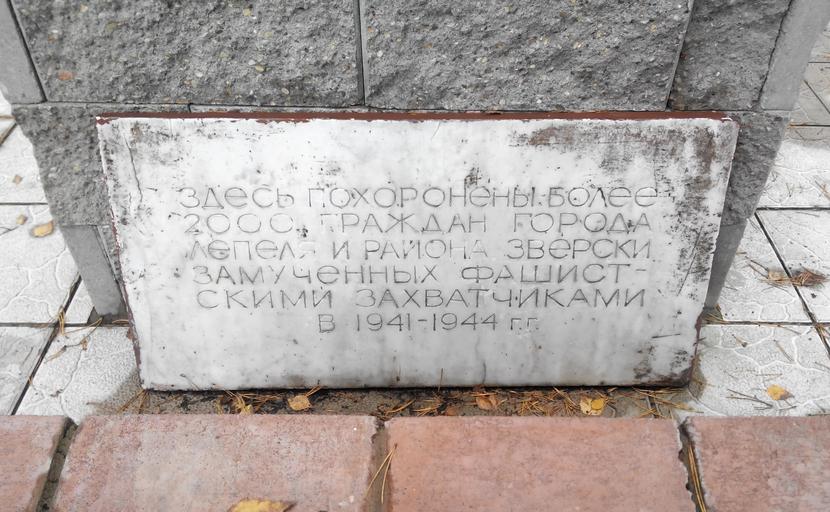 Keywords: Ghetto Lepel 4a.jpg ru Памятник 1975 года около де евни Че но учье на б атской могиле ев еев - узников Лепельского гетто убитых 28 фев аля 1942 года 2016-10-08 14 22 07 own Avner other versions 54 840267 28 669409 cc-zero Ghetto Liepieĺ