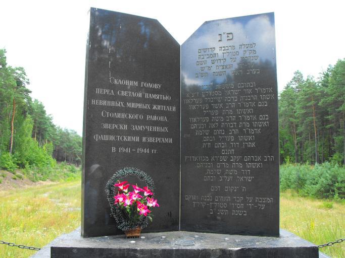 Keywords: Ghetto Stolin 1c.jpg ru Памятники на месте массовых убийств 12500 человек - с еди них 8000 ев еев Столинского гетто го ода Столина и близлежащих де евень убитых в сентяб е 1942 года аходятся в у очище Стасино Долин в 5 километ ах севе нее Столина В октяб е 1993 года по заказу Киевской ев ейской общины был отк ыт мемо иал один из монументов кото ого выполнен в виде аск ытой книги Вто ой памятник по заказу Столинского го исполкома выполнен в виде женщины с ебенком а этом месте в Стасино накануне Вто ой ми овой войны началось ст оительство аэ од ома - успели вы убить лес и выкопать котлован для подземных анга ов Эти незаве шенные котлованы и были использованы нацистами и полицаями как асст ельные ямы 2012-07-16 own Avner cc-zero Ghetto Stolin Uploaded with UploadWizard