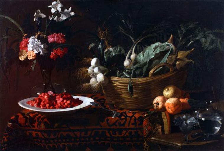 Keywords: Giacomo Legi - Basket with vegetables, flower pot and a plate with strawberries on a table.jpg artwork title en Basket with vegetables flower pot and a plate with strawberries on a table circa 1625 “1645 oil canvas cm http //www iodonna it/attualita/primo-piano/2015/arte-cibo-mostra-bresciagallery-50212467497_9 shtml refresh_ce-cp PD-old-100 Giacomo Legi Still-life paintings of vegetables Baroque still life paintings of food Garlic in art Strawberries in art |