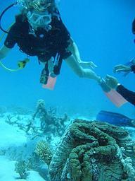 Keywords: Giant clam with diver.jpg Giant clams are the largest of all clam species and can grow until 1 5 meters in length Photographed by Jan Derk in November 2002 on the Great Barrier Reef Australia janderk Tridacna gigas Great Barrier Reef Marine Park |