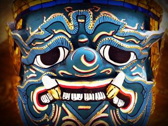 Keywords: giant isolated thailand sculpture ravana guard green white statue warrior bangkok ramayana rattanakosin ten face design body architecture color temple art ancient background asian