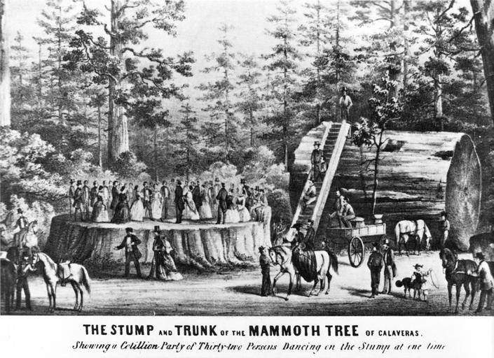 Keywords: Giant sequoia exhibitionism (cropped).jpg - Giant Redwoods Sequoiadendron giganteum trees after being cut down in the 19th century Lithograph showing a party of 32 people dancing on the stump of the ' Discovery Tree North Calaveras Grove Calaveras County California ;Credits Scanned from Hewes J J 1984 Redwoods The World's Largest Trees Gallery Books PD-old Giant sequoia exhibitionism jpg History of Calaveras County California Calaveras Big Trees State Park Sequoiadendron giganteum historical images |