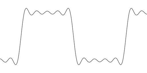 Keywords: Gibbs phenomenon 10.svg Valid SVG Picture of a function <math>\sin x +\frac 1 3 \sin 3x +\frac 1 5 \sin 5x +\frac 17\sin 7x +\frac 19\sin 9x </math> as the 5-th approximation the first five terms of the wave function <math> f\left x\right \sum_ n 1 \infty \ \frac 1 2n-1 \sin 2n-1 x </math> which is the Fourier series of the function <math>f x \begin cases 0 x 2n\pi\\ \pi/4 2n\pi < x < 2n+1 \pi\\ 0 x 2n+1 \pi\\ -\pi/4 2n+1 \pi < x < 2 n+1 \pi\\\end cases </math> own drawn with Inkscape's function plotter 2010-05-01 Johannes Rössel <span class signature-talk >talk</span> <gallery>File Gibbs phenomenon 10 png PNG version</gallery> Gibbs phenomenon Fourier transformation Fourier series Order 5 |