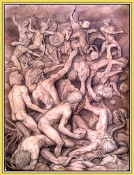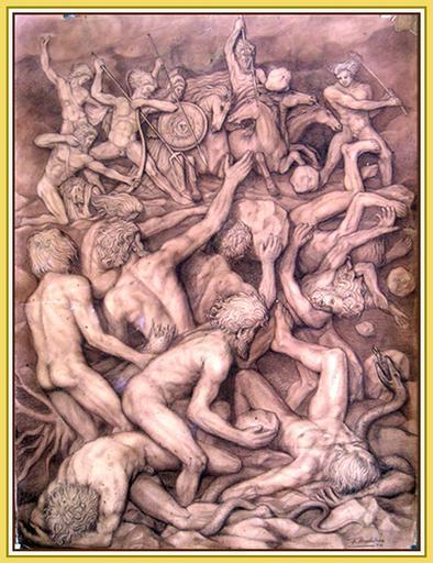 Keywords: Gigantomaquia - dibujo.jpg Artwork es Gigantomaquia cm 107 87 es Dibujo de J M Félix Magdalena previo para realizar una talla en madera Representa la lucha de los Gigantes contra los Dioses olímpicos credit line own 1994 Creator J M Félix Magdalena PD-Art Other versions GFDL cc-by-sa-all Gigantomachy Mieres Gigantomachy |