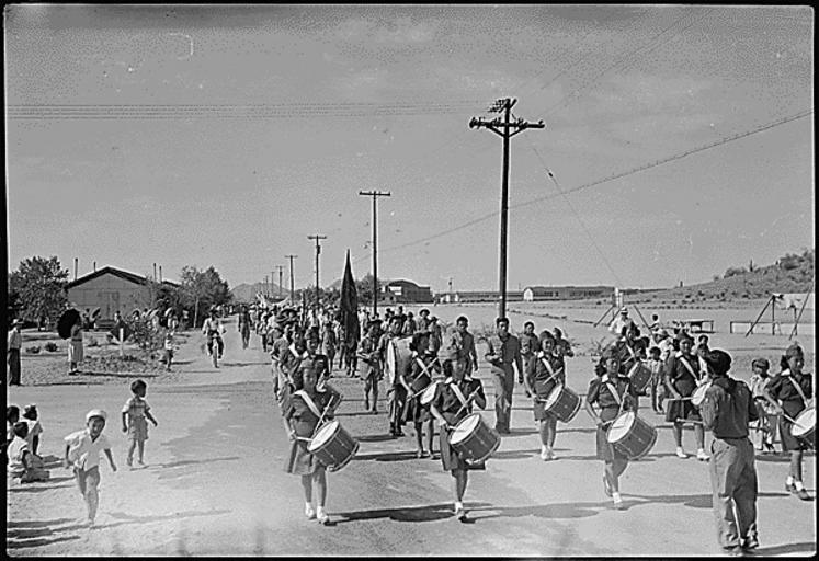 | Keywords: u.s. national archives usnationalarchives fourth of july fourthofjuly independence day independenceday nara:arcid=539573 japanese-american internment japaneseamericaninternment internment marching band marchingband japanese relocation holiday parade arizona war gila river relocation center gilariverrelocationcenter rivers, arizona riversarizona rivers girl scouts drum and bugle corps girlscoutsdrumandbuglecorps 4th of july parade 4thofjulyparade national holiday nationalholiday segregation war relocation authority warrelocationauthority world war ii worldwarii japanese-americans japaneseamericans children bands marching girl scouts girlscouts blackandwhite monochrome outdoor black and white Original Caption: Gila River Relocation Center, Rivers, Arizona. Girl Scouts Drum and Bugle Corp. participate in the 4th of July parade. U.S. National Archives’ Local Identifier: 210-G-G717 From:: Central Photographic File of the War Relocation Authority, compiled 1942 - 1945 Created By:: Department of the Interior. War Relocation Authority. (02/16/1944 - 06/30/1946) Production Date: 07/04/1944 Persistent URL: arcweb.archives.gov/arc/action/ExternalIdSearch?id=539573 Repository: Still Picture Records Section, National Archives at College Park (College Park, MD) For information about ordering reproductions of photographs held by the Still Picture Unit, visit: www.archives.gov/research/order/still-pictures.html Reproductions may be ordered via an independent vendor. NARA maintains a list of vendors at www.archives.gov/research/order/vendors-photos-maps-dc.html Access Restrictions: Unrestricted Use Restrictions: Unrestricted Original Caption: Gila River Relocation Center, Rivers, Arizona. Girl Scouts Drum and Bugle Corp. participate in the 4th of July parade. U.S. National Archives’ Local Identifier: 210-G-G717 From:: Central Photographic File of the War Relocation Authority, compiled 1942 - 1945 Created By:: Department of the Interior. War Relocation Authority. (02/16/1944 - 06/30/1946) Production Date: 07/04/1944 Persistent URL: arcweb.archives.gov/arc/action/ExternalIdSearch?id=539573 Repository: Still Picture Records Section, National Archives at College Park (College Park, MD) For information about ordering reproductions of photographs held by the Still Picture Unit, visit: www.archives.gov/research/order/still-pictures.html Reproductions may be ordered via an independent vendor. NARA maintains a list of vendors at www.archives.gov/research/order/vendors-photos-maps-dc.html Access Restrictions: Unrestricted Use Restrictions: Unrestricted |