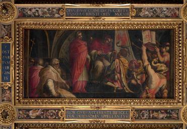 Keywords: Giorgio Vasari - Clemente IV hands his insigna to the captains of the Guelph Part - Google Art Project.jpg special url_id GwFPrWljp_b0dw PD-old-100-1923 1574 Salone dei Cinquecento - Vasari's paintings Google Art Project works by Giorgio Vasari Salone dei Cinquecento - Ceiling Clemens IV |