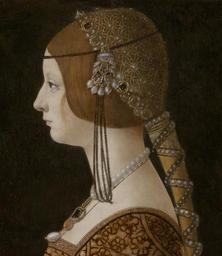 Keywords: Giovanni Ambrogio de Predis - Blanca Maria Sforza (c. 1493, National Gallery of Art) crop.jpg Artwork Creator Ambrogio de Predis c 1493 Oil on panel Institution National Gallery of Art File Ambrogio de Predis - Bianca Maria Sforza - Google Art Project jpg crop page is was here <nowiki> 09 38 17 Jun 2006 Caro1409 380 x 537 41 778 Bytes <span class comment > Bianca Maria Sforza by Ambrogio de Predis um ca 1493 </span> </nowiki> DEFAULTSORT Predis Bianca Maria Sforza 1493 Giovanni Ambrogio de Predis Sforza Bianca Maria Italian Renaissance portrait paintings in the National Gallery of Art Predis Bianca Maria Sforza 02 1493 paintings in the United States Portrait 1493 portrait paintings F 15th-century oil on panel paintings in the United States 1493 15th-century oil portraits of women at half length 1493 15th-century portrait paintings in the National Gallery of Art 1493 15th-century profile portrait paintings of women 1493 Braids in art 1493 Female hair fashion in art 1493 Females with hair with pearl jewellery in art 1493 Females with pearl necklaces in art 1493 Portrait paintings of women of Italy Renaissance profile portraits of women Ambrogio Women facing left in art Women with jewellery in art |