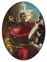 Keywords: Giovanni Battista Tiepolo und Antonio Bellucci König Davids Gesang.jpg Artwork Creator Giovanni Battista Tiepolo and Creator Antonio Bellucci century 18 Oil on canvas cm 128 94 oval unknown http //www lempertz com Kunsthaus Lempertz other versions PD-old-100 Antonio Bellucci König Davids Gesang Religious paintings by Giovanni Battista Tiepolo 18th-century paintings location missing 18th-century paintings of David 18th-century paintings not categorised by year 18th-century oil paintings of sitting men at three-quarter length Paintings of men with open books Oval paintings of males Images from Kunsthaus Lempertz |