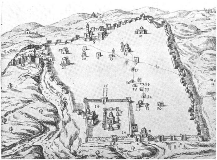 Keywords: Giovanni Cales 1616.PNG en The map of Jerusalem in 1616 by Giovanni Cales A map of Jerusalem published by Giovanni Cales in 1616 illustrates the pilgrim's reading of the city's topography fig 34 pl Topografia Jerozolimy Grafika - Giovanni Cales 1616 <br /> 9 - Wieczernik Syjon; 38 - bazylika Grobu Świętego Information field Original caption Fig 34 Jerusalem plan Giovanni Cales's illustration for Vincenzo Favi Viaggio di Gerusalem From Thurston The Stations of the Cross modified by the author html http //books google pl/books id P1_BBK-LsesC lpg PA107 dq Franciscan 20Chapel 20of 20the 20Cenacle hl pl pg PA108 v onepage q Franciscan 20Chapel 20of 20the 20Cenacle f true Annabel Jane Wharton Selling Jerusalem Relics Replicas Theme Parks http //books google pl/books id P1_BBK-LsesC hl pl hl pl pg PA108 img 1 zoom 3 sig ACfU3U2OtR6ScVUPpCYfO0Qjjr6EN38eWg w 685 direct Giovanni Cales 1616 Old maps of Jerusalem 1616 maps Giovanni Cales Vincenzo Favi Stations of the Cross PD-old-100 |