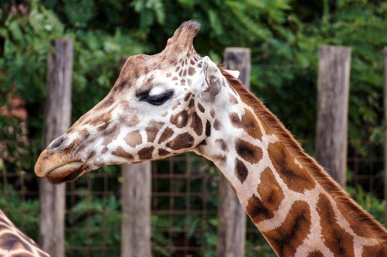 Keywords: giraffe zoo mammal head animal wild animal pattern portrait face view fur large ungulate eyes animal portrait animal world