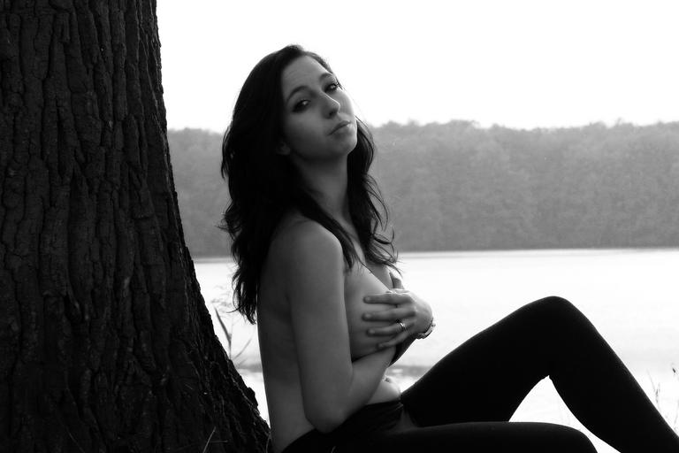 Keywords: girl beautiful elegant elegance act lake forest one buttocks feet water erotica sexy woman hair eyes breast covered black and white tree