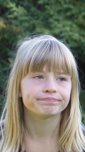 Keywords: girl blond face head desperate consider dissatisfied mouth gestures skin hair indifferent sour