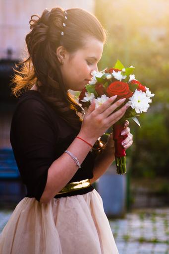 Keywords: girl bouquet beauty portrait dress story joy nice