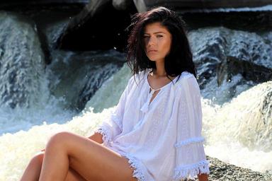 Keywords: girl cascada white shirt sensual summer waves water nature seduction beauty brunette
