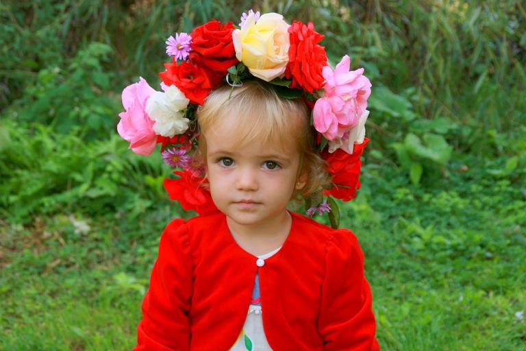 Keywords: girl child blond wreath flowers red
