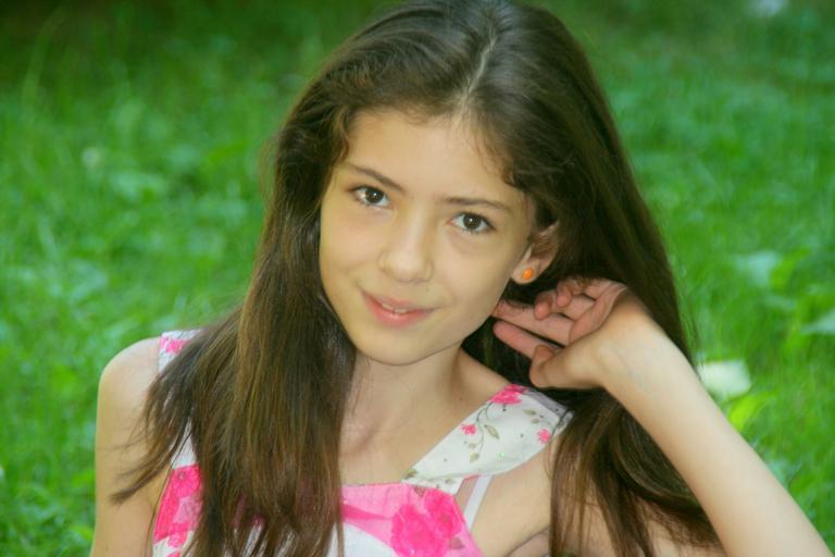 Keywords: girl child grass innocence portrait long hair smile beauty