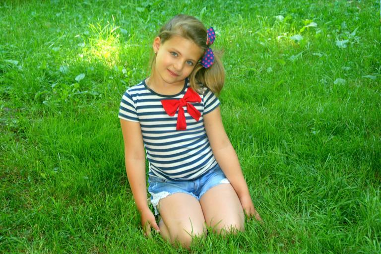 Keywords: girl child grass innocence portrait long hair smile beauty
