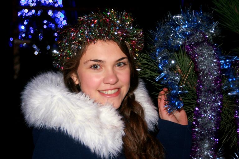 Keywords: girl christmas christmas tree tinsel happiness