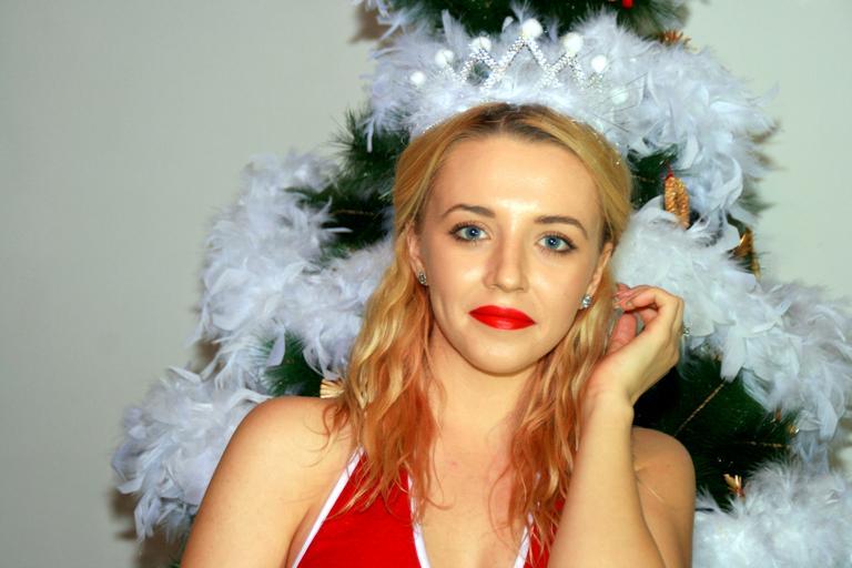 Keywords: girl christmas tree wreath snowflakes white christmas decorations tinsel holidays
