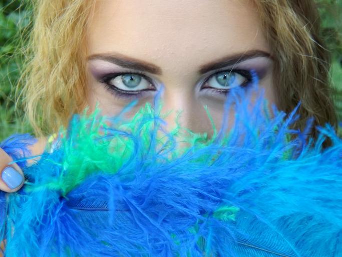 Keywords: girl eye blue green feather gene seductive makeup