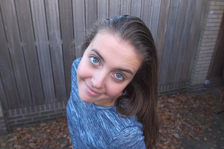 Keywords: girl face watch blonde long hair smile young blue eyes