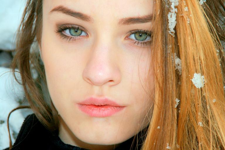 Keywords: girl green eyes blonde portrait snow beauty winter seductive