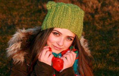 MAKE A MEME View Large Image girl hat green green eyes cold winter portrait smile