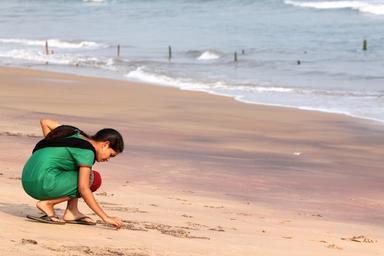 Keywords: girl india beach sand ocean waves water writing