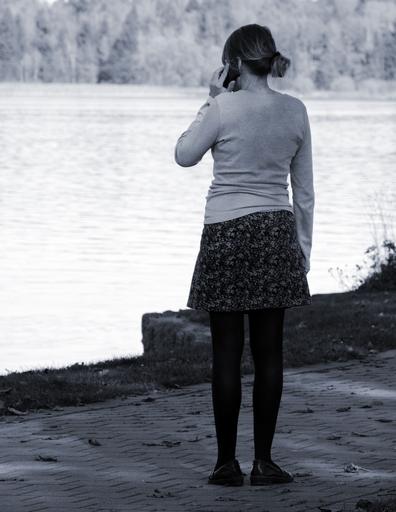 Keywords: girl individually alone woman lonely wait call mobile phone talk thoughtful person human communication