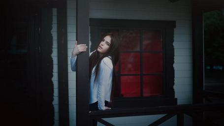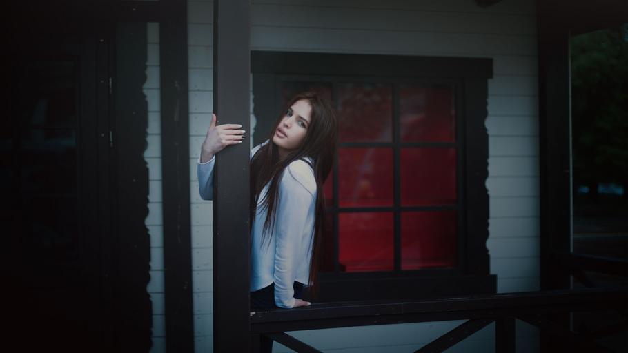 Keywords: girl jacket window hairstyle model style dark background view fashion beauty cottage posing