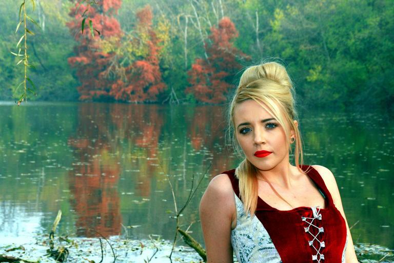 Keywords: girl lake autumn forest reflection red princess beauty seductive nature