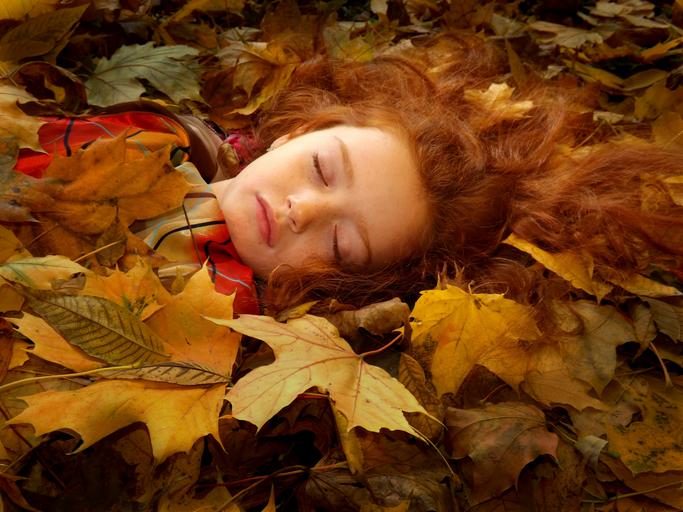 Keywords: girl leaves autumn yellow portrait red hair redhead beauty child