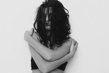 Keywords: girl model brunette hair facial hair black and white hug girl black white