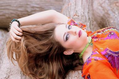 Keywords: girl orange wood timber blue eyes beauty loneliness