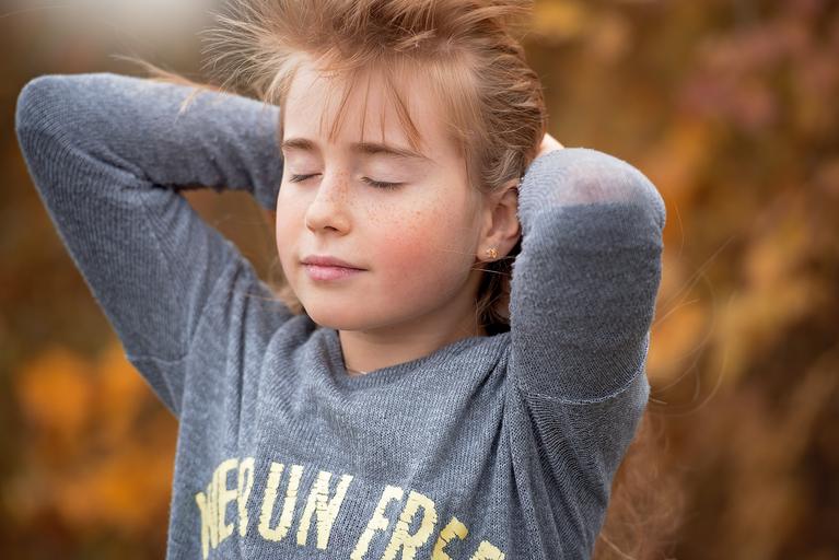 Keywords: girl out nature autumn face portrait in motion wind closed eyes close person human autumn colours