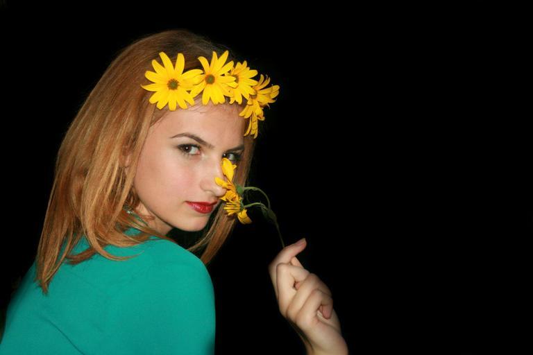 Keywords: girl portrait flower yellow beauty green seductive blonde