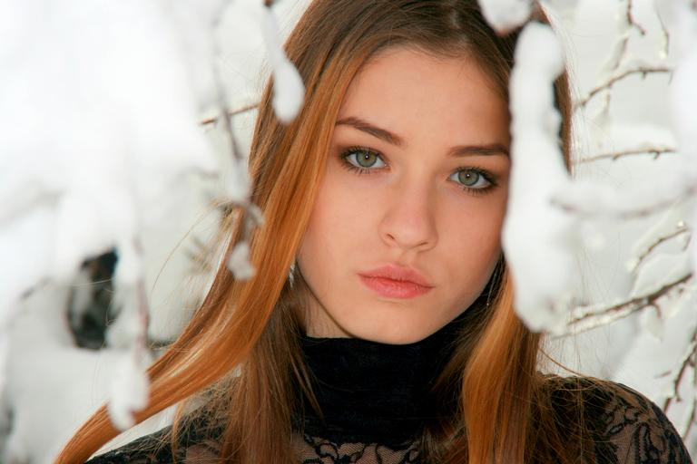 MAKE A MEME View Large Image girl portrait green eyes blonde snow winter